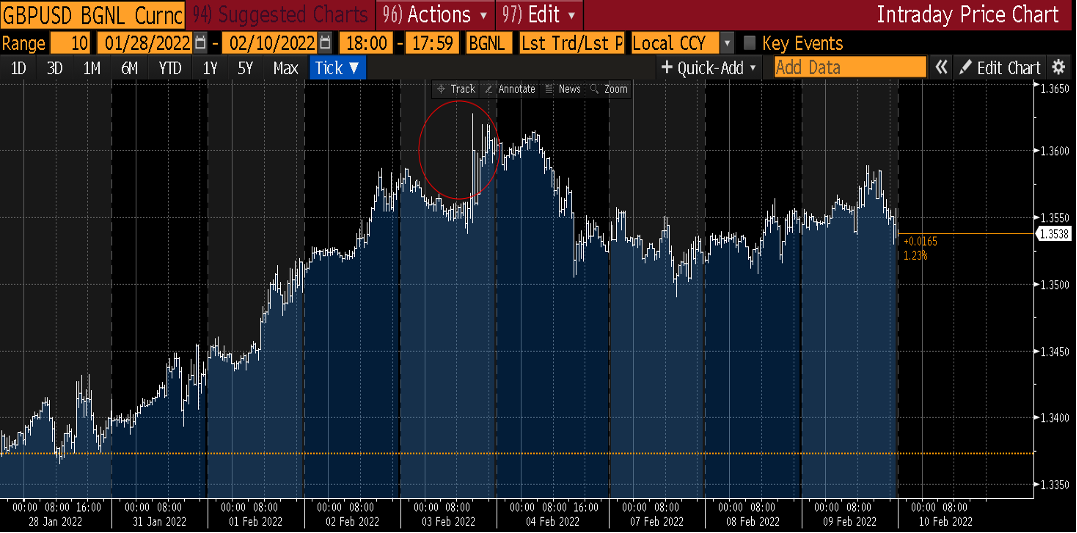 - Comments from the Governor of the Bank of England during the press conference post the rate decision – Governor Bailey suggested the rise in interest rates was purely down to inflation and not an overheating of the UK economy and such hikes could have a significant impact on real household incomes going forward – in market terms this was a ‘’dovish hike’’ by the central bank.